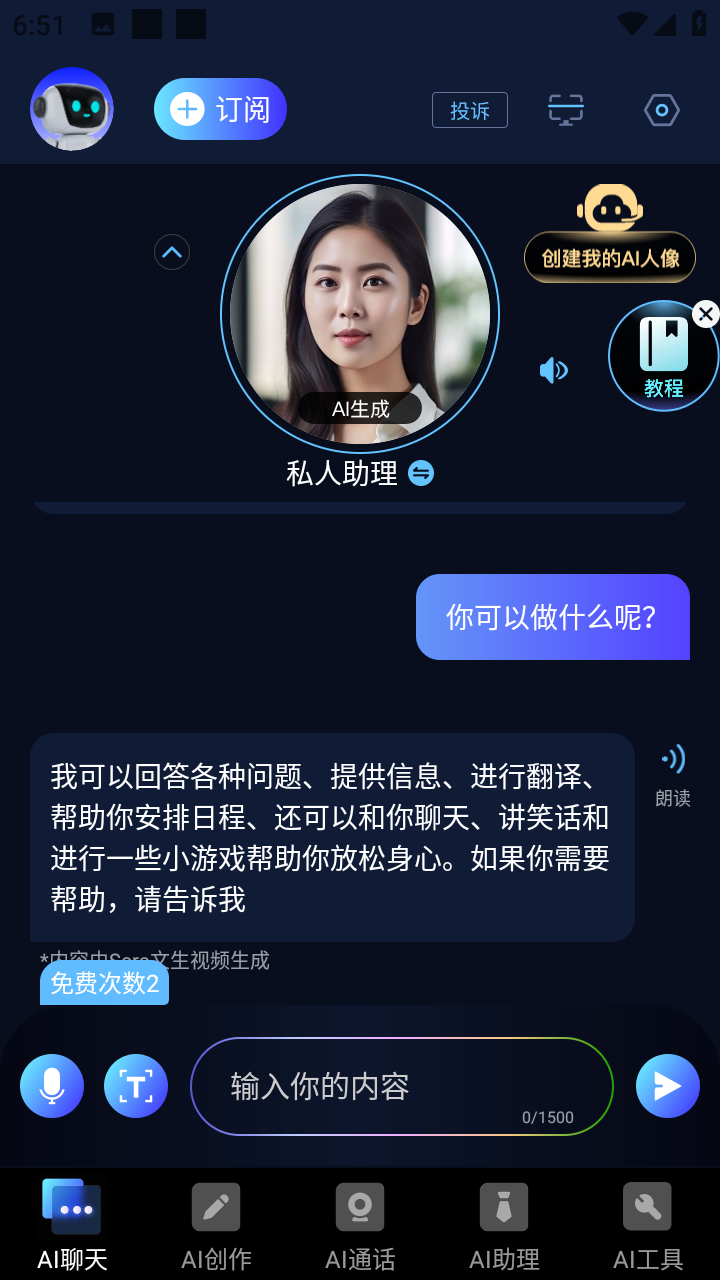 这是一款智能聊天对话、智能写作文章和AI绘画生成的软件。你可以随时随地与它对话帮你解决各式各样的难题。不涉及在线视频播放。